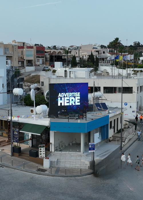 Located in the heart of Ayia Napa, our LED Billboard grabs the attention of over 100,000 daily passersby. With a vibrant atmosphere and bustling activity, your ad will shine in this popular spot.